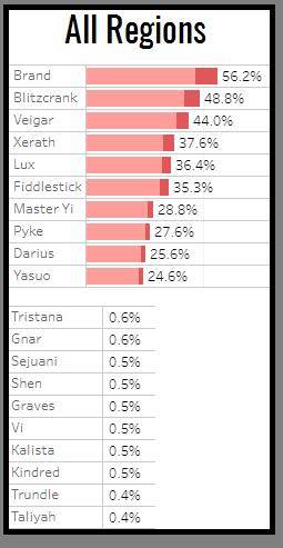 韩服是唯一一个布兰德不是首选的地区,他以8.9%的Ban率排在第32。