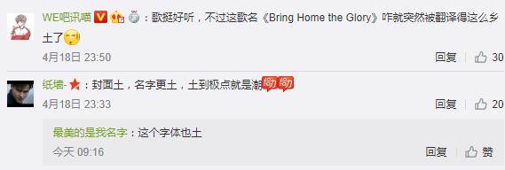 大部分网友都是对歌名的翻译无法理解,不知道为什么翻译的这么乡土,也有网友很调皮的表示:“封面土,名字更土,土到极点就是潮”。
