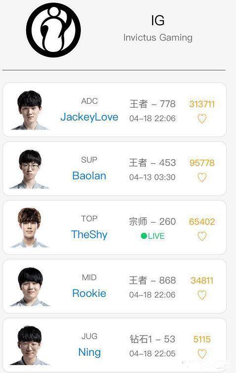再说IG上单Theshy,如果你有关注Theshy的LOL韩服战绩,你会发现不管是上单,还是中单,亦或是打野和ADC,Theshy都能Carry比赛,他的打野千珏,以及ADC卢锡安发挥抢镜,Shy哥的超深英雄池让人叹服。