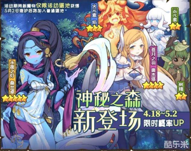 永夜之灯.桑兰卓(五星)、苍月之羽.奥杰塔(四星)、火元素.焰(三星)、云元素(二星)树精(二星)也将加入时光扭蛋中哦