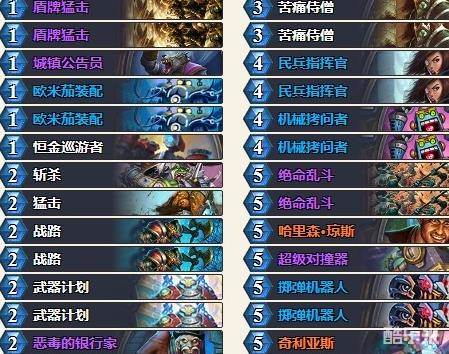 机械拷问者,这张牌实战效果非常好,首先在对阵盗贼德鲁伊等快攻时你拉出什么都不吃亏,因为他们都没有什么大怪,特别是盗贼在打出迈拉的元素后你可以无副作用的裸奔,但是最厉害的还是在对阵OTK和战士内战,但是OTK现在几乎没有了,只有极少数的克苏恩战,但是战士内战就很好用了,因为不管是拉出炸弹战的炸弹组件,还是砰砰,又或者是最好的档案员,都是非常非常赚的。