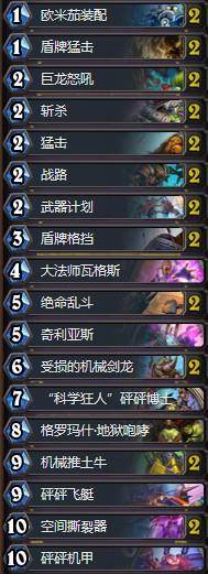 近段时间战士热度的不断提升也使得抓战士的超生德、亡语猎与卡德加法的数量有所增加,而这套进攻型更强的大哥战则是小光头的一次有力还击,开出砰砰机甲的玩家可以试用一下这套攻防兼备的大哥战。