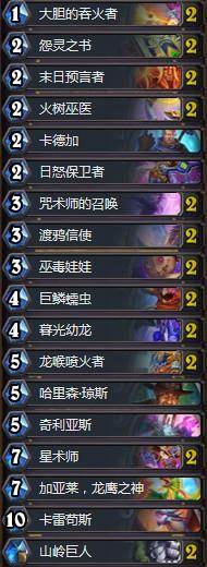 这个套路谨献给玩腻主流套路以及热衷于法师的玩家,实话实话,论上分的效率肯定是不如战士、盗贼、德鲁伊这三巨头的,不论胜负,时间消耗上肯定是比德鲁伊、盗贼多的,而稳定性上肯定是不如战士的,不过这套牌胜在新颖,往往能出奇制胜!