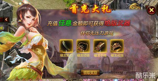初入游戏,先来个首充是非常有必要的。首充送的蟠龙套装属性是非常不错的。小编经过研究发现,蟠龙套装的属性要可以一直用到40级,很好的解决了前期的装备问题。