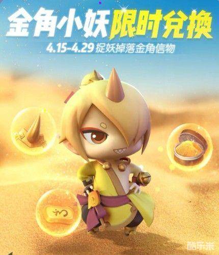 4 月 15 日 - 29 日期间,御灵师在成功捕捉任意妖灵时,都会有大概率掉落金角小妖的信物【金角的犄角】、【金色的闪粉】以及【皂角】,单个信物每日获取上限为 8 个。