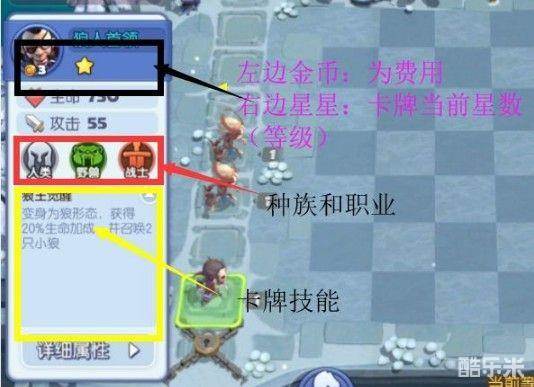 自走棋卡组,每一张卡,都有自己相应的种族和职业,以及技能。技能是独有,游戏里面也有说明。