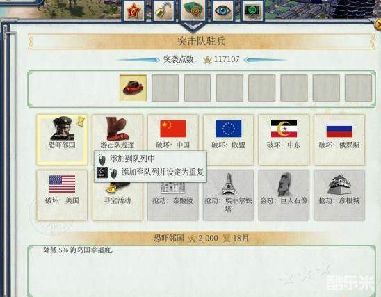 2.使用袭击、突击队驻兵、恐吓邻国选项来恶意降低加勒比海平均幸福值。