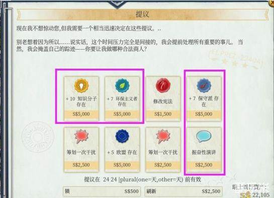 4.通过经纪人购买提议,直接获取派系支持以及相关的提议。