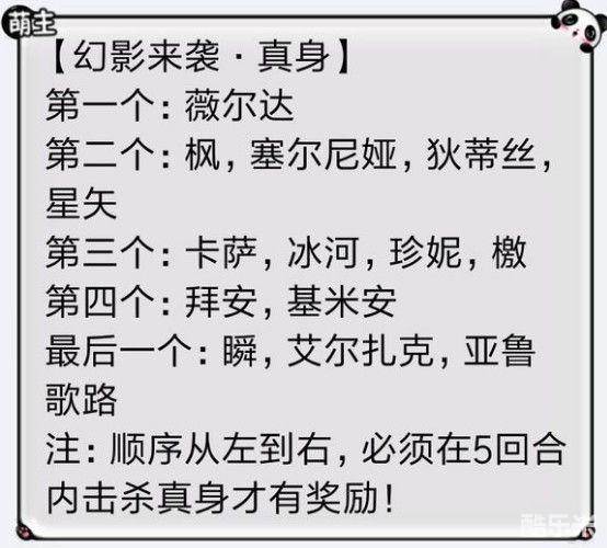 注:顺序从左到右,必须在5回合内击杀真身才有奖励。