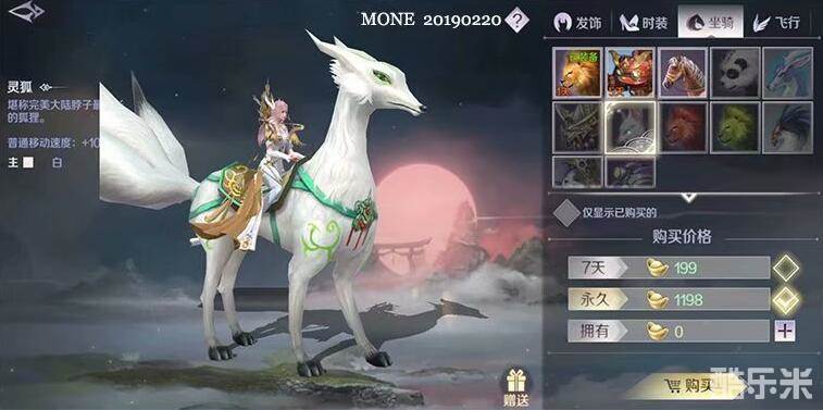 增100%移动速度,1198元宝,性价比较高,外观一般,高贵冷艳;