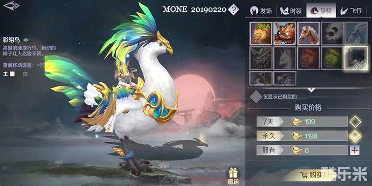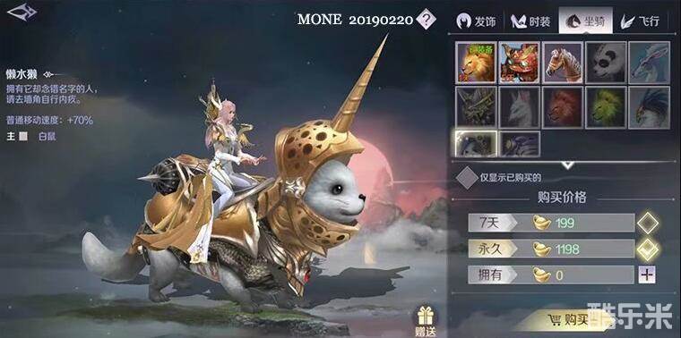提供70%移动速度,价格为1788元宝,虽然比较贵,但是移动还比较慢,好在是很可爱的;