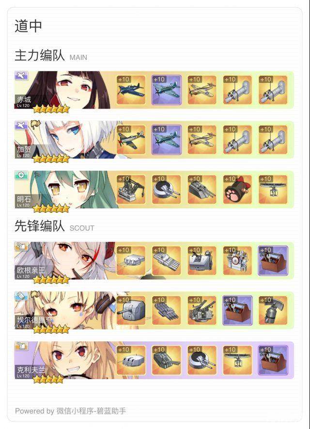 装备详解:,道中没什么好说的,Boss阵容给战列带上穿甲,航母可以把液压换成燃油,但要确保制空权(通过指挥喵加成),重点是整体航空必须大于3540,通过航空指挥喵和装备自行调整。