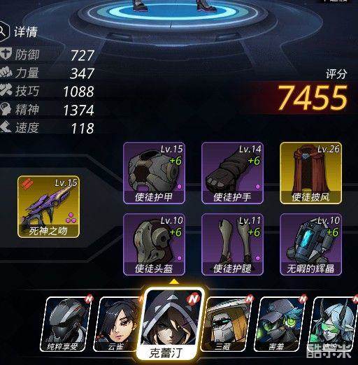 克蕾汀(力量E,技巧A ,精神S+,速度B+):K头必备,打boss输出极高。武器推荐火狙,套装推荐使徒套,转异人系。