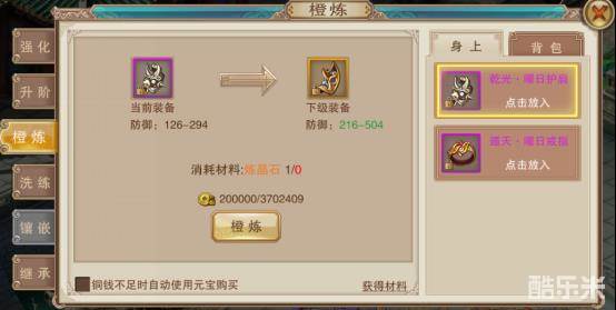 橙炼是将紫色装备升级成橙色装备,需要消耗一定的炼精石。升成橙色后,会提升属性。