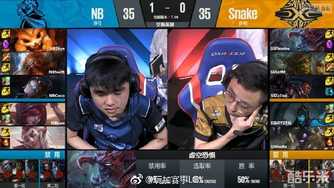 NB使用出了一套偏发育的阵容,而Snake是一套前中期非常强势的阵容。比赛开始,双方打野均是红buff野区开,在比赛前期双方是以平稳发育为主,不停地换塔换经济。