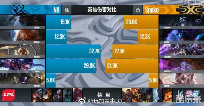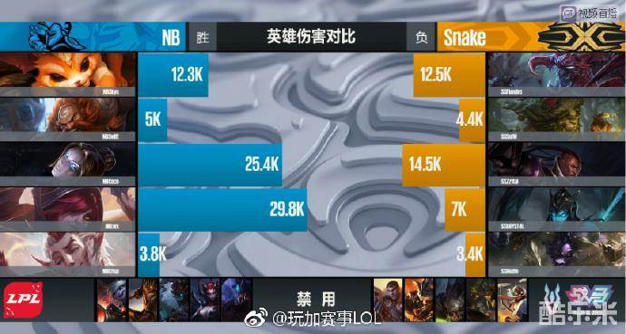 之后的比赛,NB一直压制着Snake。虽然,Snake利用阵容的优势快速的拿下了第一条大龙,但是他们在拿下大龙后太过拖沓,在救人与撤退间犹豫,最终导致四人被击杀,NB更进一步的确立领先,建立起胜势。最终,随着霞拿到三杀,NB击杀Snake四人后,拿下比赛胜利,目前2-0领先Snake,取得赛点!