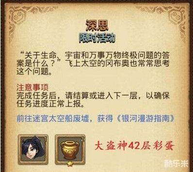 完成任务挑战之后,结算完毕即可进行下一层的挑战了,赶紧去寻找银河漫游指南,完成深思定向越野。深思定向越野的攻略就分享到这里了,总之就一个关键点:找到银河漫游指南,希望大家都能顺利通关深思定向越野挑战。