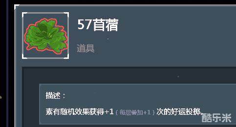 幸运草,英文看不懂,翻译了更看不懂,不知道有啥用,可能是增加概率装备的触发率,但是依旧弟弟,毕竟占用了你一个获得红色道具的机会。
