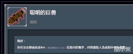 这两个道具伤害有限,但是可以增加你道具的触发率,巨兽没有写概率,但是用起来的时候我发现不是每一下普攻都爆炸,可能是有个内置cd。