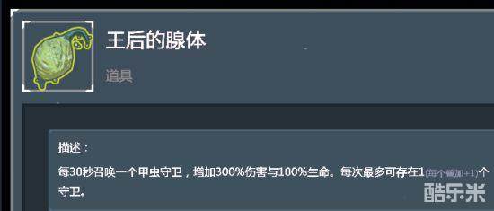 王后的腺体,有时候我都不想捡,因为没有黄色装备的打印机,那个虫子又脆又没伤害,而且体积贼大,会挡住你的子弹。