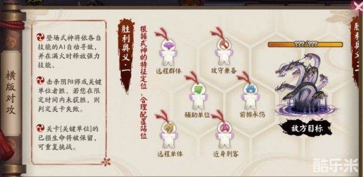 战斗准备阶段配置上场的式神,战斗开始后可在召唤范围内选择并进行召唤。式神上场后会自动攻击敌人。