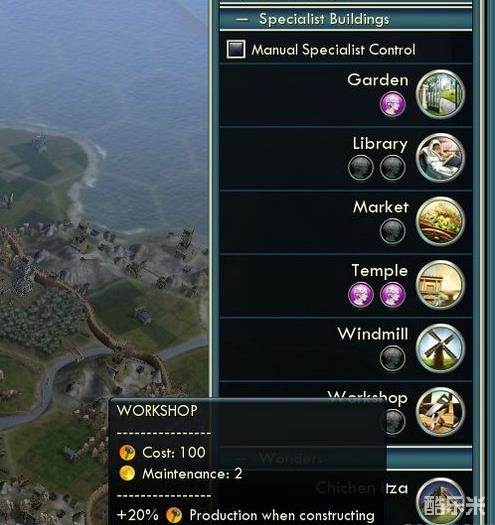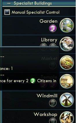 基本上的功能有 加科技研究点数 加黄金时代点数 加生产力 加食物和加金币 不同种类的建筑 安排的工人颜色也会不同 科技是蓝色 黄金时代是紫色等等