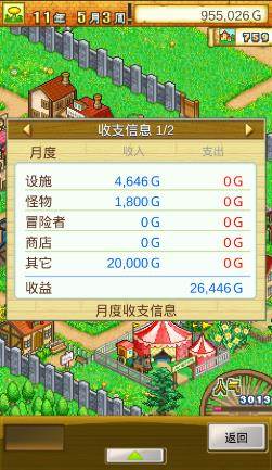 月收入主要由冒险者在设施中的消费、在村子外讨伐怪物以及玩家自己贩卖商品所得三部分组成。入驻者每年的四月初会上交税费,探险后也会得到一些奖励。