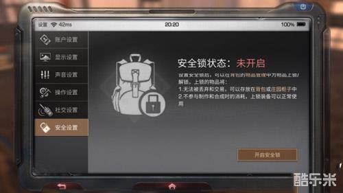 1、打开设置功能:首先我们来说一下物品安全锁这个功能,这个功能在设置里,默认是未开启状态,当开启后能够锁定指定物品。