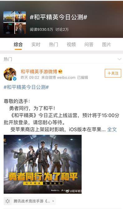 《和平精英》的上线在全网掀起了讨论的热潮, 5月7日-8日, #和平精英今日公测##大吉大利和平精英#等相关关键词12次登上微博热搜榜,总阅读量破亿,同时登顶知乎热榜第一,游戏社区TapTap热门榜榜首,市场热度高涨。多方媒体也针对《和平精英》多维度产出相关游戏资讯,助推游戏公测消息全面传播。