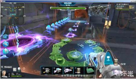 然后在基地前的斜坡下面靠边第三个格子的位置各放置一个量子防御塔,这里一定要放对位置,否则会翻车。剩下的格子可以在前面放置共振清怪。
