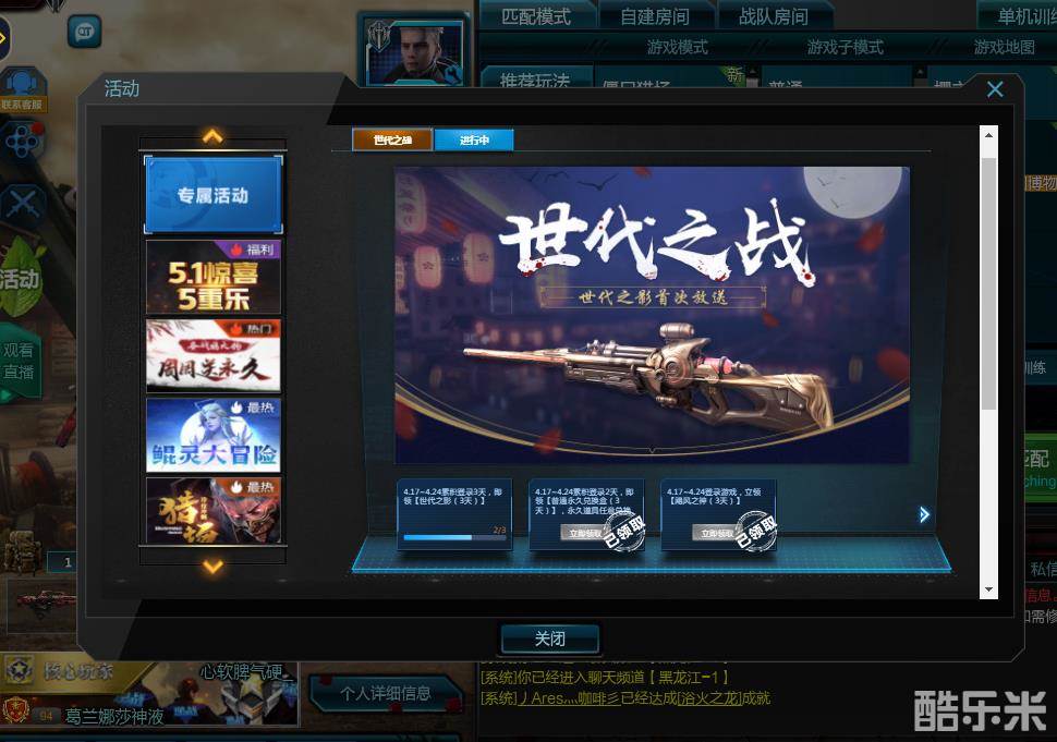 连续登陆3天即可领取3天世代战猎场,这次活动可以说是不小的福利。有些小伙伴没有枪,登陆3天后也可以玩耍,多妙哉,而且,还可以领取以往在线给的奖励,有些错过的也可以从里面领取。不知道怎么领取。请往下看↓↓