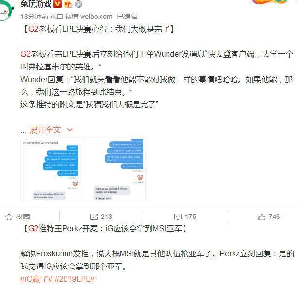 而今年G2战队在欧洲赛区也是以碾压的姿态夺冠,将在MSI世界赛与IG战队重新交手,他们真的做好复仇的准备了吗?实际上G2老板在看到TheShy的无敌表现之后都震惊了,给上单Wunder发消息,让他赶紧上游戏练吸血鬼。结果Wunder回应:“我们来看看他能不能对我做一样的事吧,如果他能,那么我的这一路旅程到此结束!”G2老板听到Wunder的回答后都绝望了,对网友说道:“我们大概是完了!”
