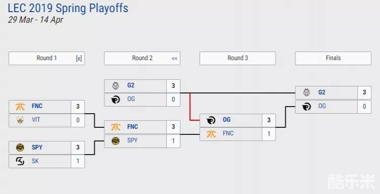 LEC赛区显得梯队更加明显,在常规赛中G2根本就毫无敌手,尽管中间出现过几次爆冷,归结原因还是G2自身打的比较随意,但季后赛中两战常规赛第二的OG,两场全部以3:0的比分横扫对手,其中决赛最后一局仅仅用了18分钟结束比赛。