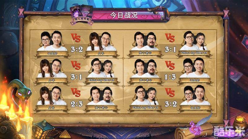 《炉石传说》双人现开赛“怪盗军团篇”在4月21日进行了B组小组赛。经过多轮精彩欢乐的对决后,奶粉与老皮搭档的“双皮奶”战队、王师傅和王老菊的“两个老公”战队成功晋级。刘飞儿、夕尘残枫组成的“月半”队、雪妍与桥林搭档的“China top UDer x2”队遗憾淘汰。