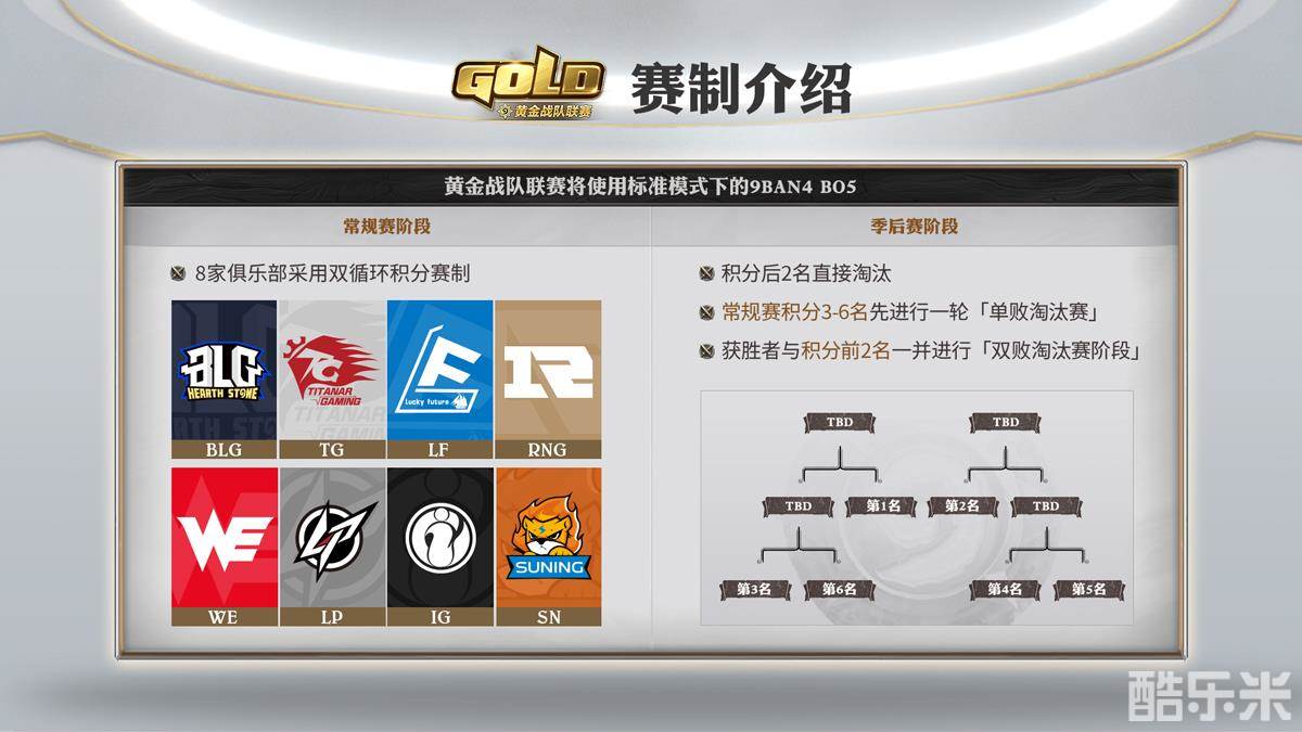 《炉石传说》黄金战队联赛将全程采用标准模式下的9职业BAN4的BO5 KOF赛制,为各类新奇卡组和技术顶尖的选手提供大显身手的机会。