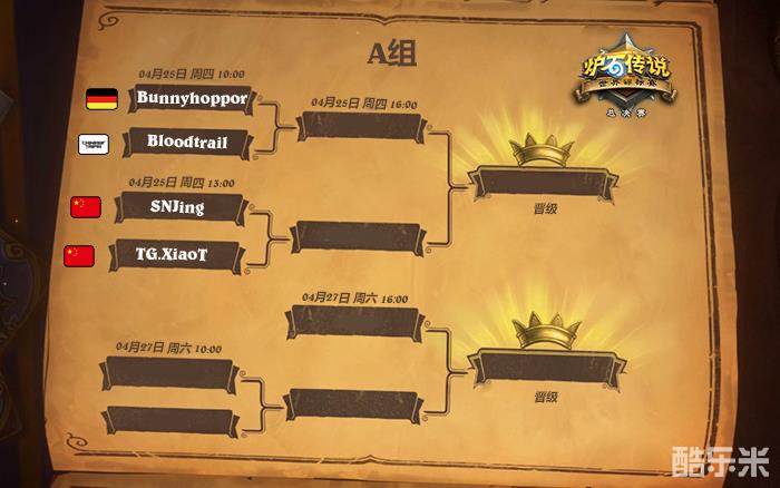 4月25日 10:00 小组赛AB组首轮及胜者组决赛。