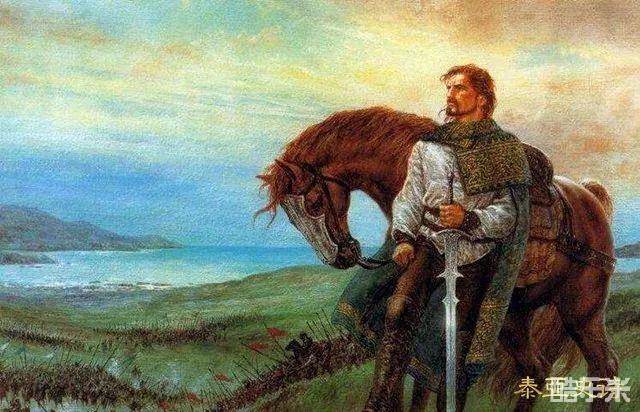领主站他的面前,放平其剑,按在其右肩上,正式授予了他骑士的身份,也代表着授予了他荣耀和使命。