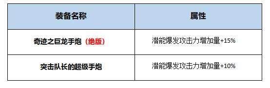 (1)武器中奇迹之巨龙手炮为堆潜能爆发最高核心装备(已绝版)