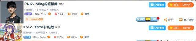 一直以来,ming在LPL辅助位置上都排在前三,能力非常地强,而在今年春季赛上,karsa更是RNG战队唯一公认的大腿,他曾经多次拯救队伍于绝境,可是在今天直播的时候,ming的热度只有7万,而karsa就更惨了,他的热度仅仅只有3万多,要知道,在斗鱼LOL版块里,2万以及3万热度的主播一堆,都属于人气超低的三流以下主播,没想到不到一年时间,RNG战队众人在斗鱼的日子就变的这么惨了!