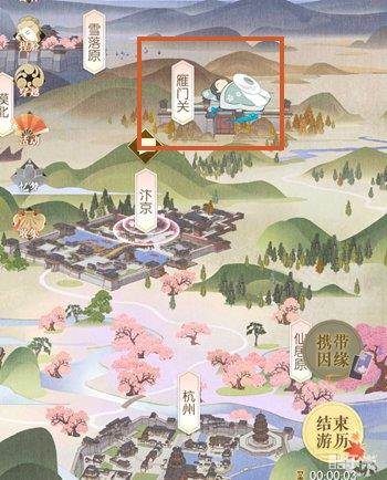 2、开始游历后,在江湖地图中可以看到一个躺着睡觉的小人待在某个地图中,点击她所在的地图进入游历场景