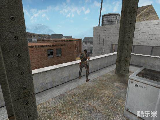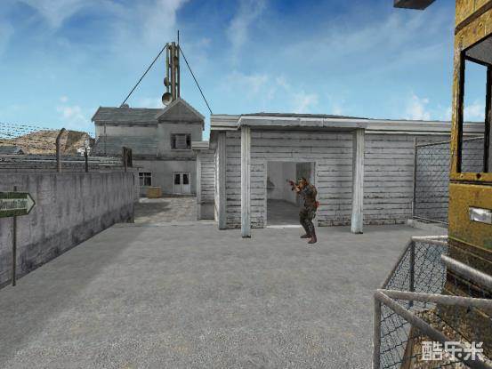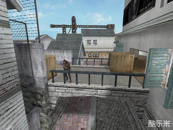 作为潜伏者的我们,经常在进攻酒吧的时候,被第一时间赶到酒吧的保卫者击杀,保卫者居高临下,我们经常处于下风。不慌!我们只要运用好手中的闪光弹,一样可以取敌人首级!我们第一时间来到酒吧道路,然后往如图所示的准心点位投掷一颗闪光弹,这颗闪光弹便可以第一时间将赶到酒吧桥的保卫者闪住,掩护自己进入酒吧!枪法好的小伙伴还可以趁保卫者被闪住的瞬间,击杀敌人!