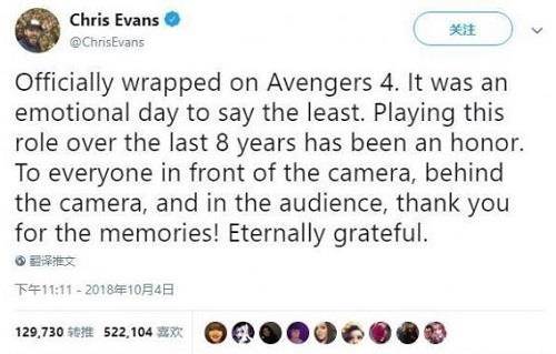 演员埃文斯与漫威签的电影合同已经到期了,而基于其扮演的美队角色深入人心的程度,导演罗素兄弟应该会安排一场合理的“退隐”或者“死亡”。