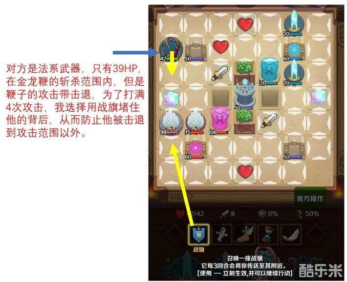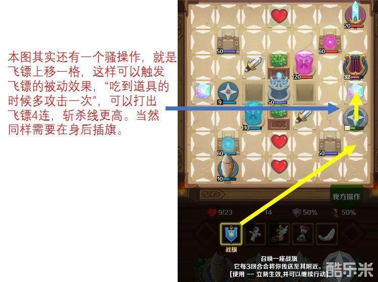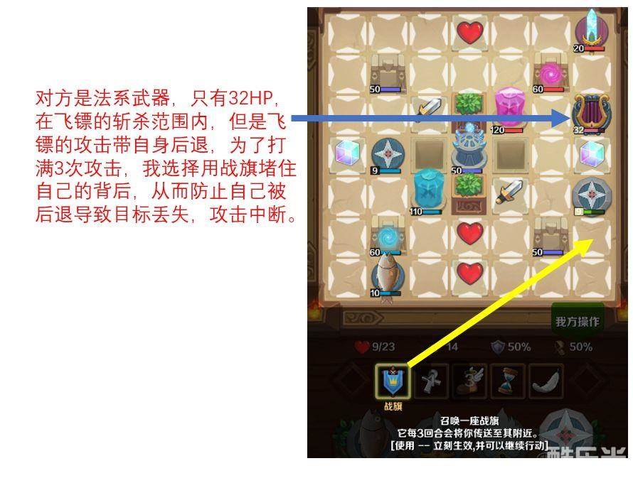 和上一条同理,某些多次攻击的武器也会在攻击的时候位移,不过位移是自己往后退,比如飞镖,这时候思路也是利用道具来卡位,让自己能够对目标多次输出,不过要记住,打之前一定要算好伤害,正如背水一战的含义,如果你这一套杀不掉敌人,下回合自己多半就死定了。