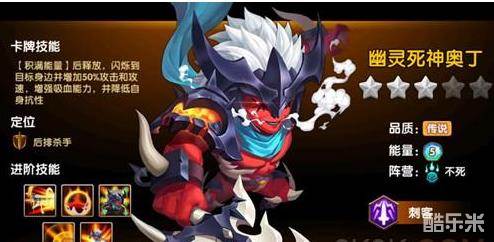 死神觉醒(紫色+2解锁):当生命值低于50%时,15%几率无视目标的护甲和魔抗,同时对近战造成的伤害增加15%。