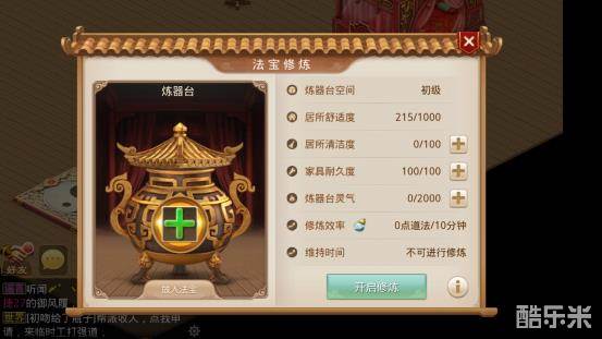 极品法宝出世,必将千锤百炼,浴火而成。法宝修炼需在居所布置炼器台类家具,期间可积累道法奖励,需手动领取,且角色下线时法宝仍可自行修炼。法宝等级提升将为玩家角色带来更多的属性提升,极品法宝更是高手玩家的象征,法宝修炼功能将大大加快这一历程。