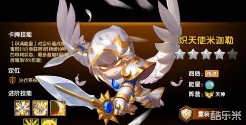 炽天使米迦勒在手游传说大陆中是一枚治疗系的卡牌英雄,品质为传说级的,能量条为6,触发时间较长,进场需要考虑时机;