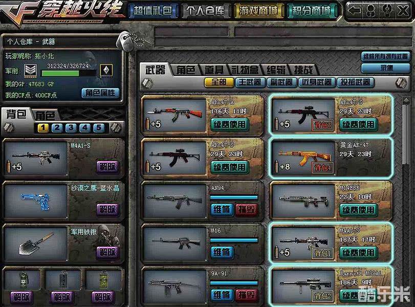 只有不经眼的6把点券武器,但在当时绝对能够引起身边朋友的羡慕,半年的AK47-A、M4A1-S、巴雷特足以花费好几百元。如果你说这都不算稀有,那上方的黄金AK足以引起你的好奇吧,近百元7天的价格让土豪都望而却步,只有真正的欧皇玩家才能在抽奖礼包中获得。