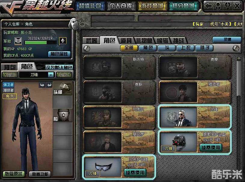 由于当时的人物还没有英雄级,所以没有任何的加成在选择人物的时候,一般都会观看它的价值和外观,而当时最为经典的应该就是刀锋、猎狐者、飞虎队和曼陀罗,不过这位玩家好像已经全部收入囊中了。更重要的是这位玩家还拥有一年的烟雾头盔,如果不清楚价格的可以在商城自己查阅,绝对颠覆你的三观。