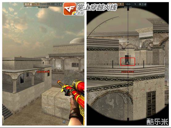 可视边桥的范围就是上面右边的红框位置。有的小伙伴们可能会说,不就这一小块区域嘛,没啥用,可是你要知道,这个位置时架住警家出口的绝佳位置,信不信往下看就知道了。