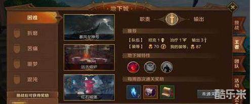 ③5人王者副本:满级并且有一定装备基础后可以参加,类似于魔兽的大秘境,刷完当天不给装备,第二天0点可开启装备箱子获取高装等装备,每天只能开一次。有装等要求,每10个装等提升一层,装等不够会出现DPS偏斜,坦克被碾压的情况,因此除了奶妈其他职业很难跨太多等级刷王者本。是满级后获取装备和材料的重要途径,推荐每天最少刷一次。难度随着层数逐步提高。